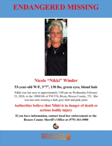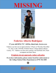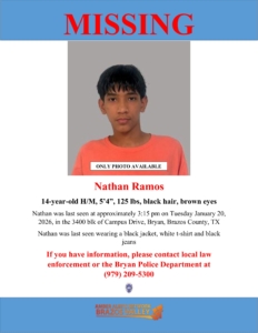 The following are current missing person cases from the Brazos Valley. If you have information please contact local authorities.